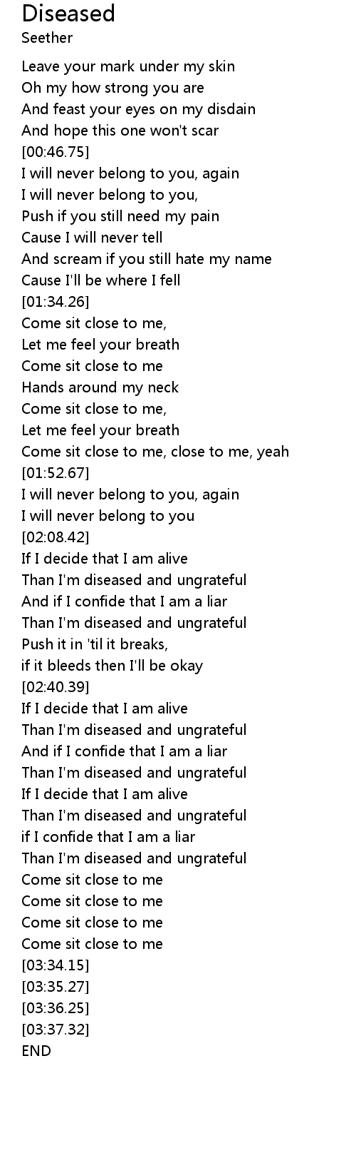 Come sit close to me |