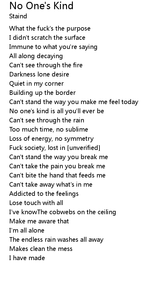| No one's kind is all you'll ever be | |