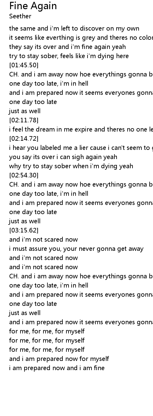| [01:26.45] | they say its over and i'm fine again yeah |