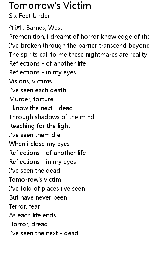 | Song | Tomorrow's Victim |