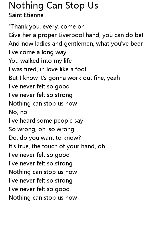 Nothing can stop us now |