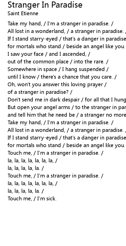 Take my hand, / I'm a stranger in paradise. / |