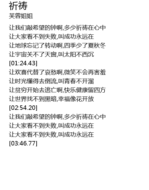 | [03:06.59] | 让我们敲希望的钟啊,多少祈祷在心中 |