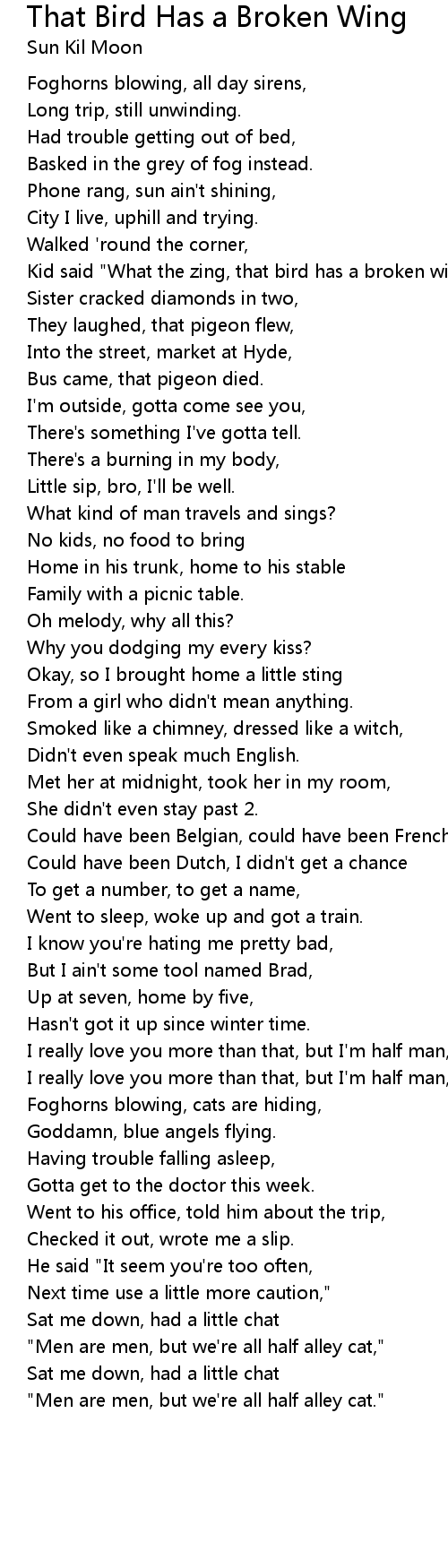 Kid said "What the zing, that bird has a broken wing," |