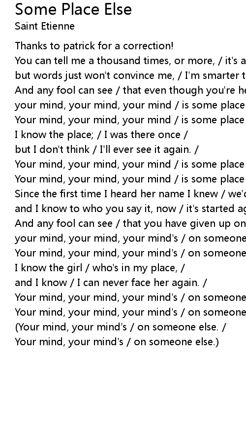Your mind, your mind, your mind / is some place else. / |
