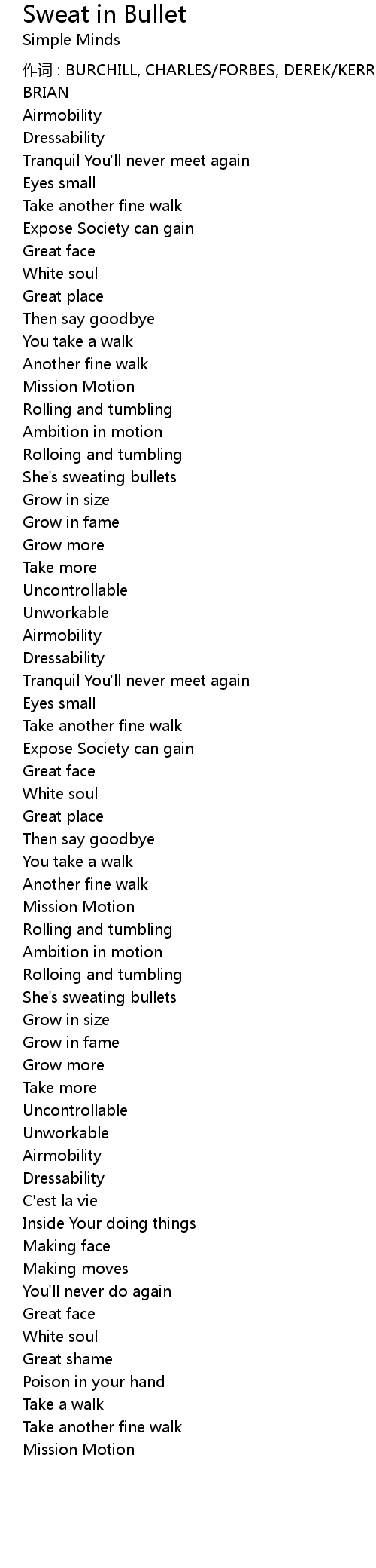 | 作词 : BURCHILL, CHARLES/FORBES, DEREK/KERR, JAMES/MACNEIL, MICHAEL/MCGEE, BRIAN | |