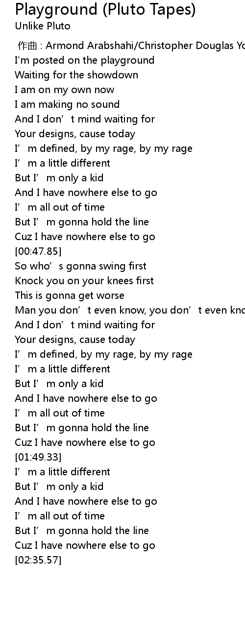 | [00:00.19] | I'm posted on the playground |