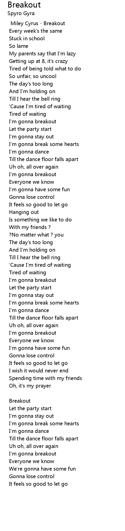 Breakout Lyrics