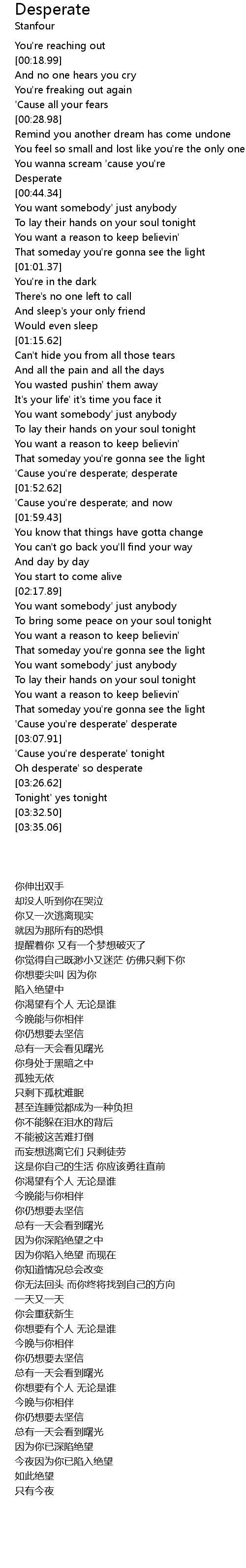 | [01:45.81] | 'Cause you're desperate; desperate |