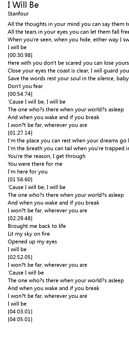 | [01:03.99] | The one who?s there when your world?s asleep |