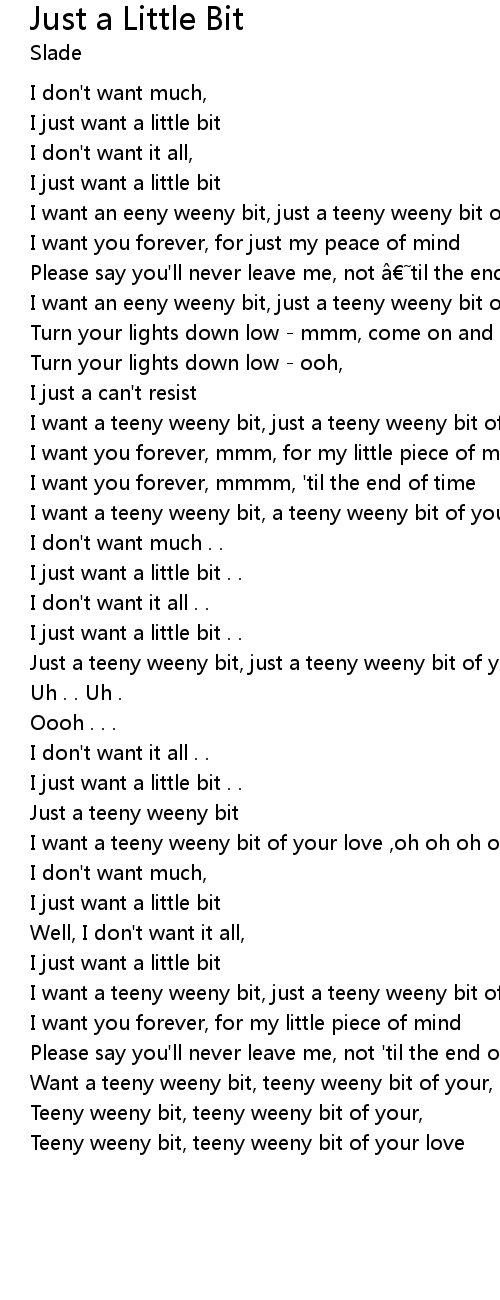 | Want a teeny weeny bit, teeny weeny bit of your, | |