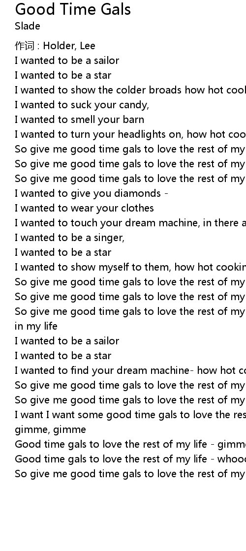 | So give me good time gals to love the rest of my life - wo ho ho | |