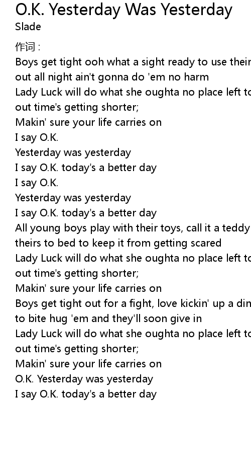 | Lady Luck will do what she oughta no place left to lock up your daughter no way out time' s getting shorter | |