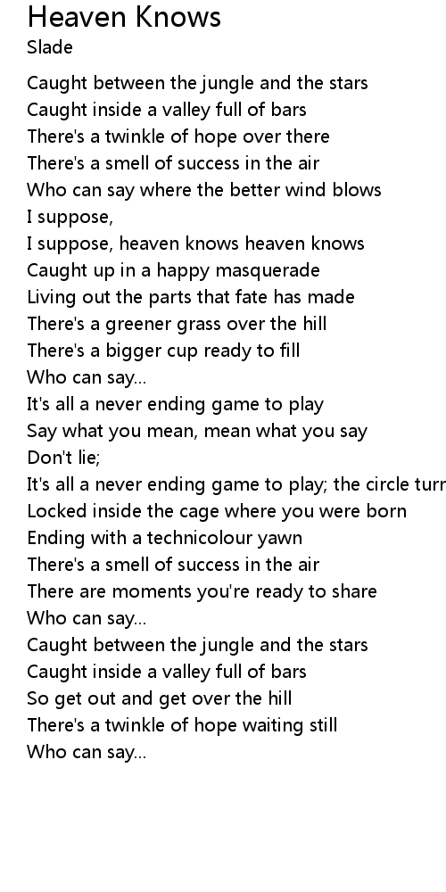 I suppose, heaven knows heaven knows |