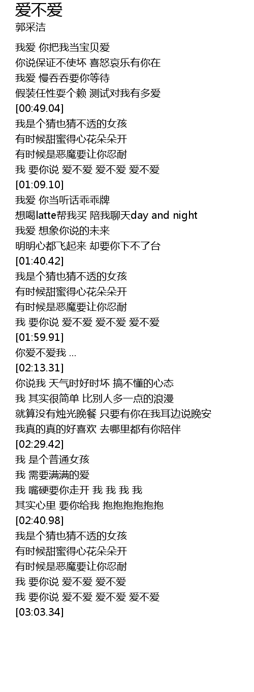 | [02:53.55] | 我 要你说 爱不爱 爱不爱 |