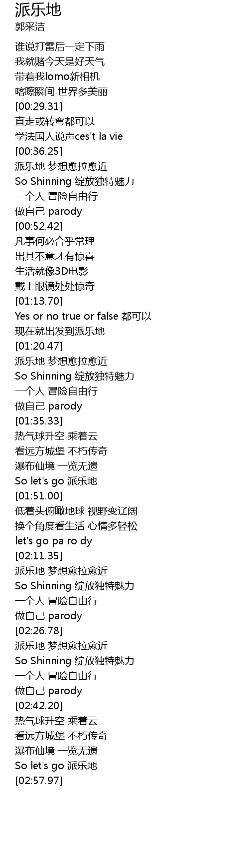 | [02:27.61] | 派乐地 梦想愈拉愈近 |