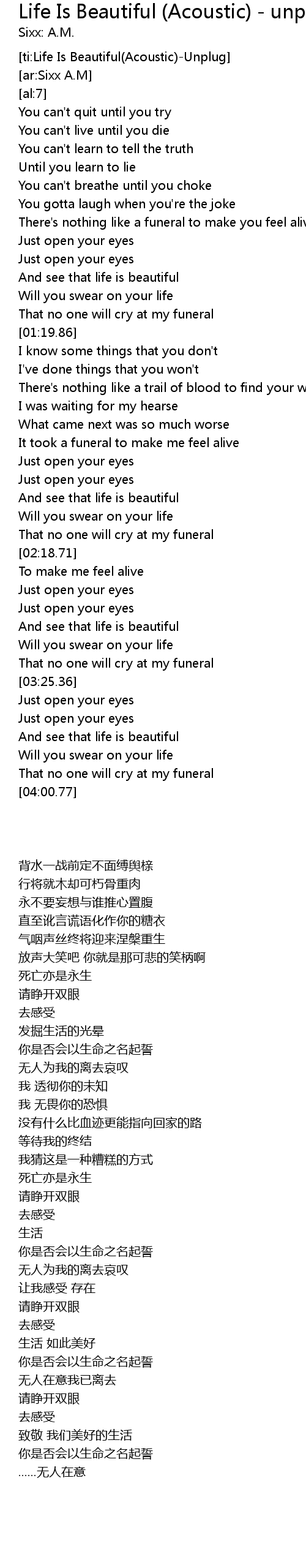 [ti:Life Is Beautiful(Acoustic)-Unplug] |