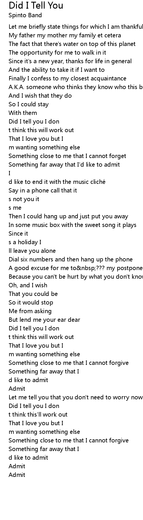 | Song | Did I Tell You |