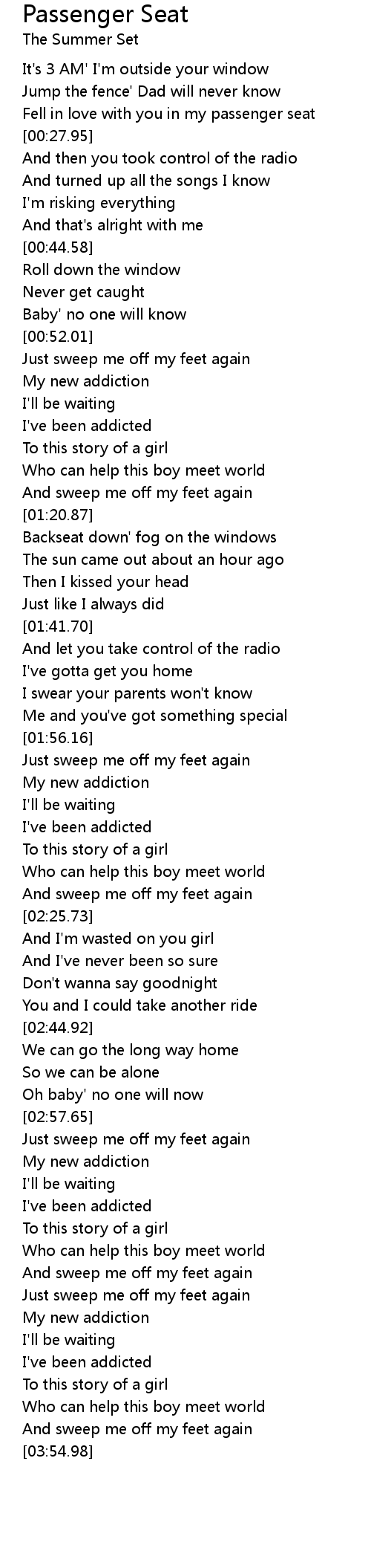 Fell in love with you in my passenger seat |