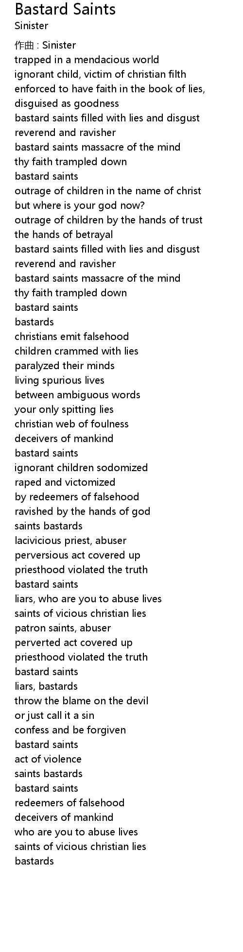 | bastard saints filled with lies and disgust | |
