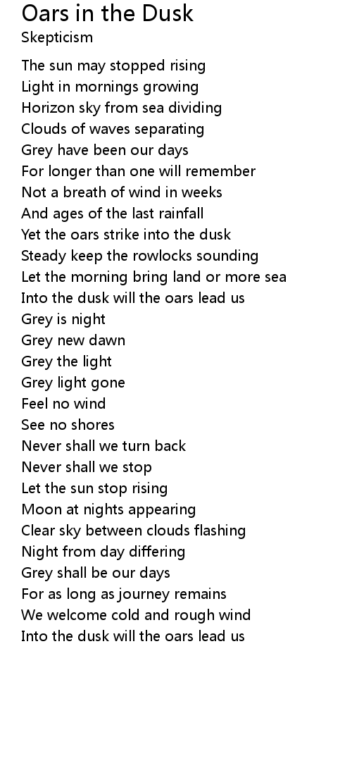 Yet the oars strike into the dusk |