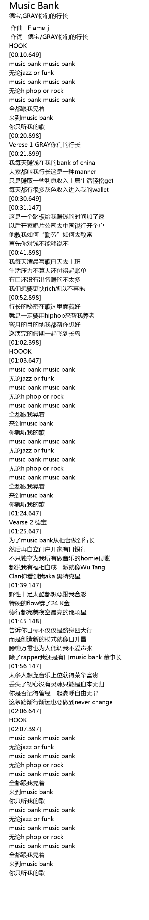 | [00:00.466] | 作词 : 德宝/GRAY你们的行长 |