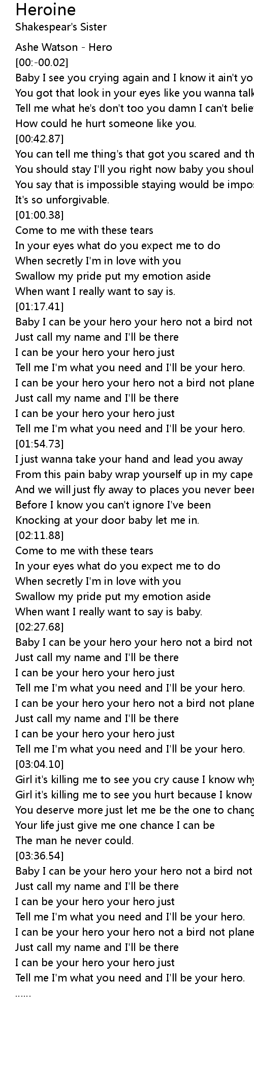 | [01:17.58] | Baby I can be your hero your hero not a bird not plane |
