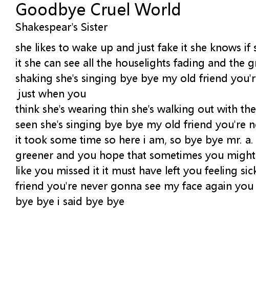 she likes to wake up and just fake it she knows if she touches it she'll break it she can see all the houselights fading and the ground beneath her feet is shaking she's singing bye bye my old friend you're never going to see my face again you left me outside in the rain so bye bye mr. a. [look out] just when you think she's wearing thin she's walking out with the biggest man that you've ever seen she's singing bye bye my old friend you're never going to see my face again it took some time so here i am, so bye bye mr. a. well now her grass is looking greener and you hope that sometimes you might see her what a diamond, boy, looks like you missed it it must have left you feeling sick and twisted bye bye my old friend you're never gonna see my face again you left me outside in the rain so bye bye i said bye bye |
