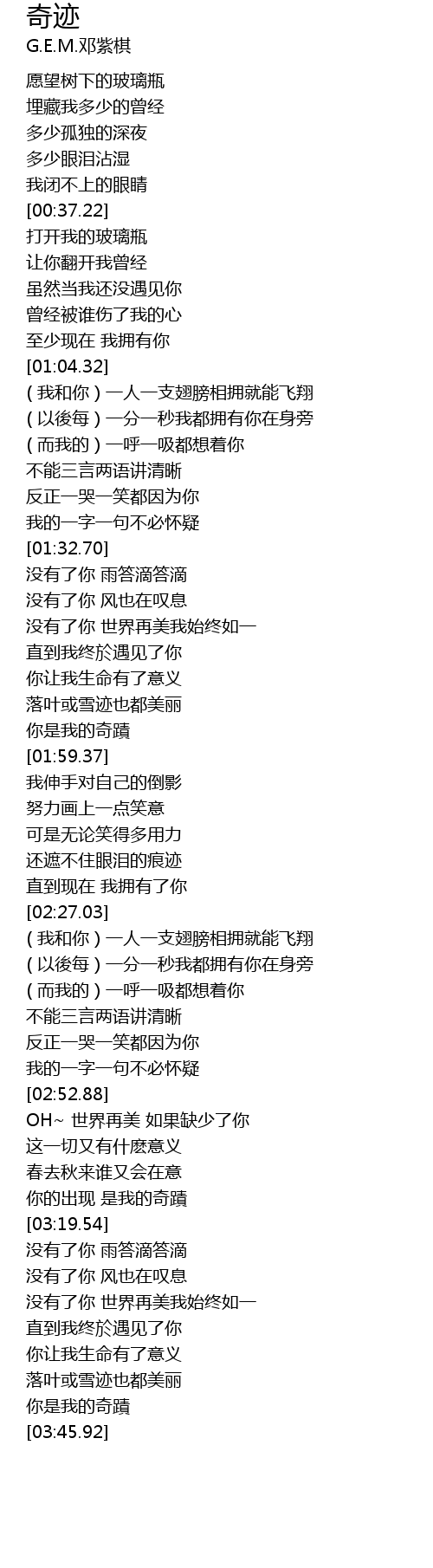 | [03:15.47] | 你的出现 是我的奇蹟 |