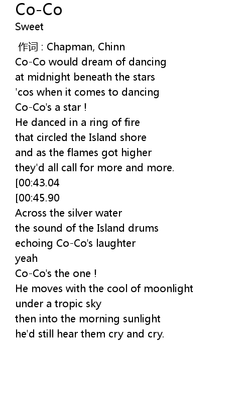 | [00:42.17][00:45.90][00:49.82][00:56.10][00:59.83][01:03.75] | CoCo |