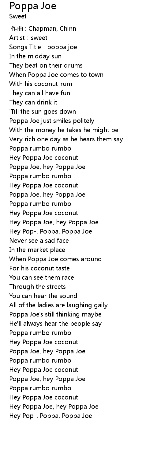 | [00:45.39] | Hey Poppa Joe, hey Poppa Joe |