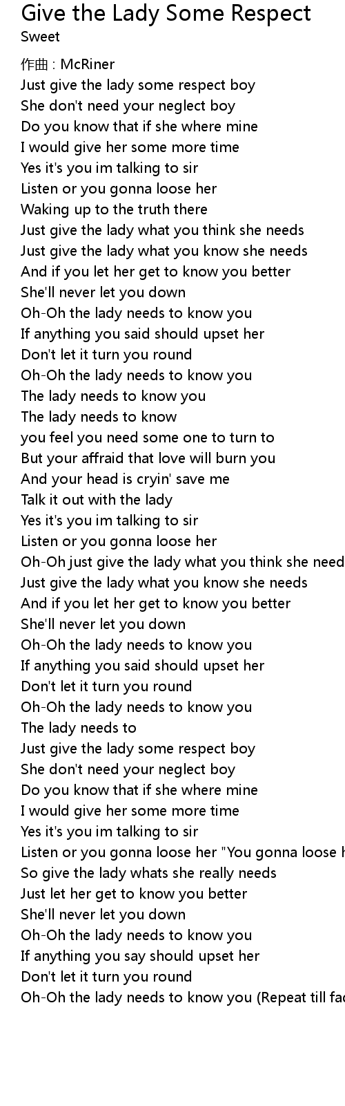 | Song | Give the Lady Some Respect |