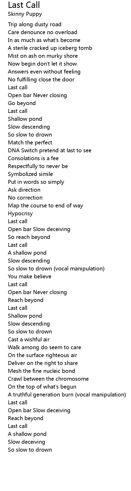 So slow to drown (vocal manipulation) |