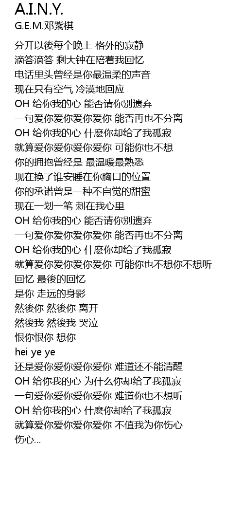 | [00:44.279] | OH gěi nǐ wǒ de xīn néng fǒu qǐng nǐ bié yí qì |
