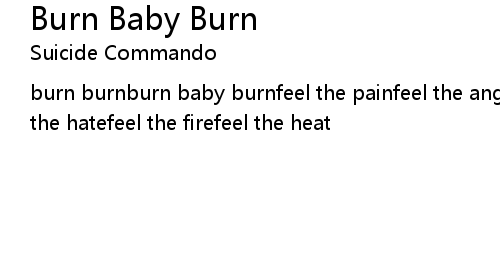 burn burnburn baby burnfeel the painfeel the angerfeel the flamesburn burnfeel the hatefeel the firefeel the heat