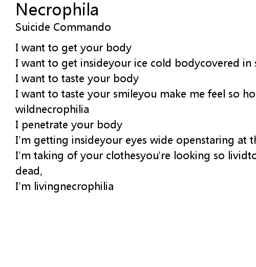 | I want to taste your smileyou make me feel so hornyyou're making me go wildnecrophilia | |