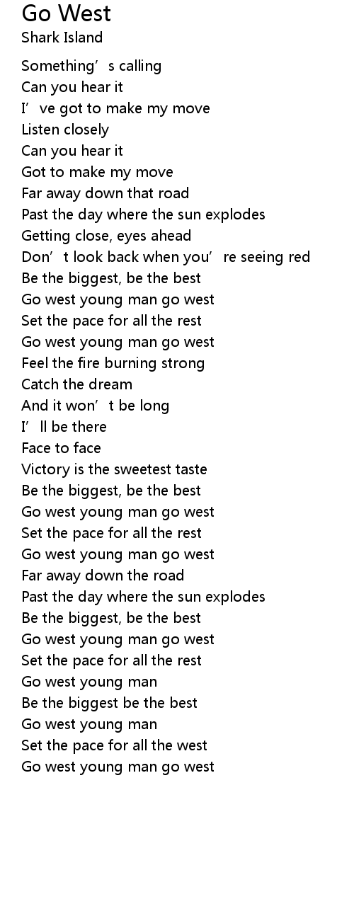 | Go west young man go west |