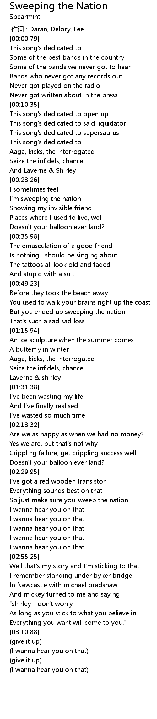 | [00:12.59] | This song' s dedicated to said liquidator |