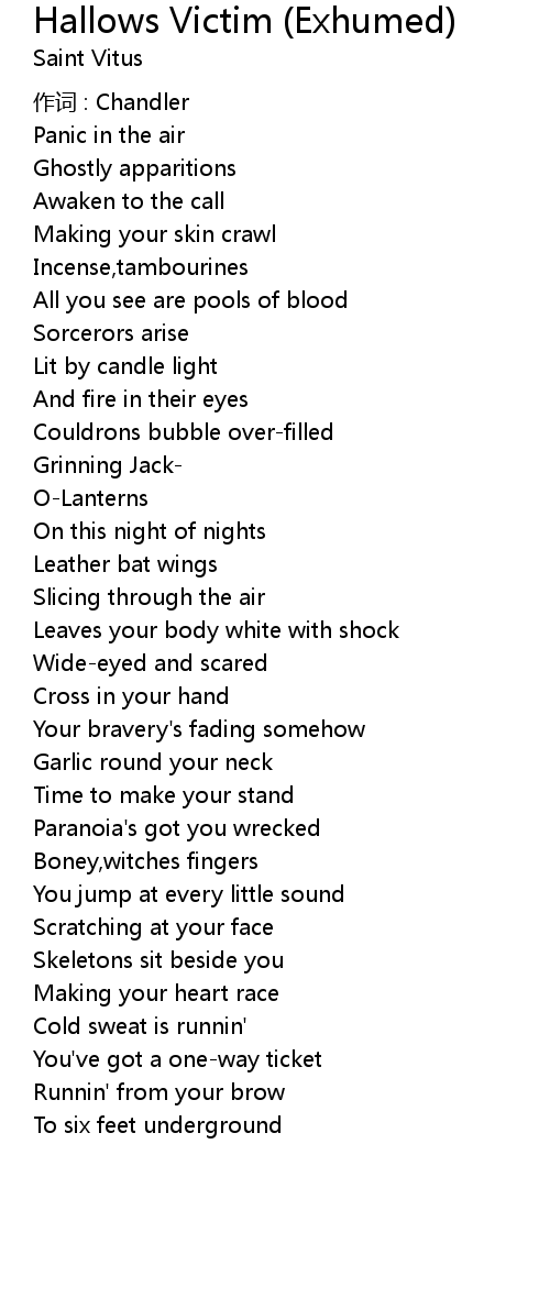 | Song | Hallows Victim (Exhumed) |