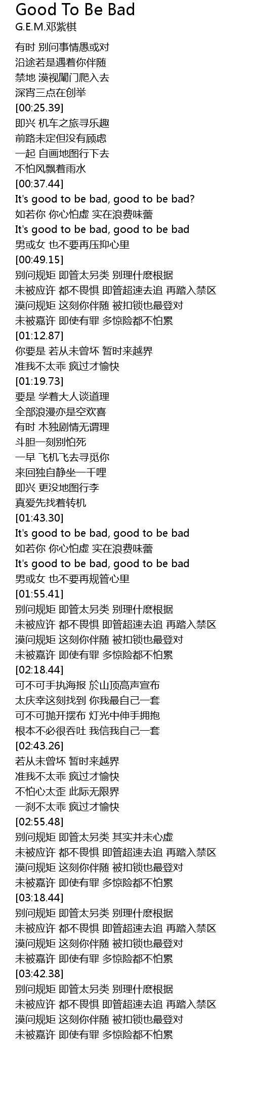 | [00:37.88] | It' s good to be bad, good to be bad? |