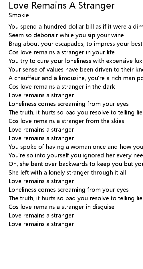 | Love remains a stranger |