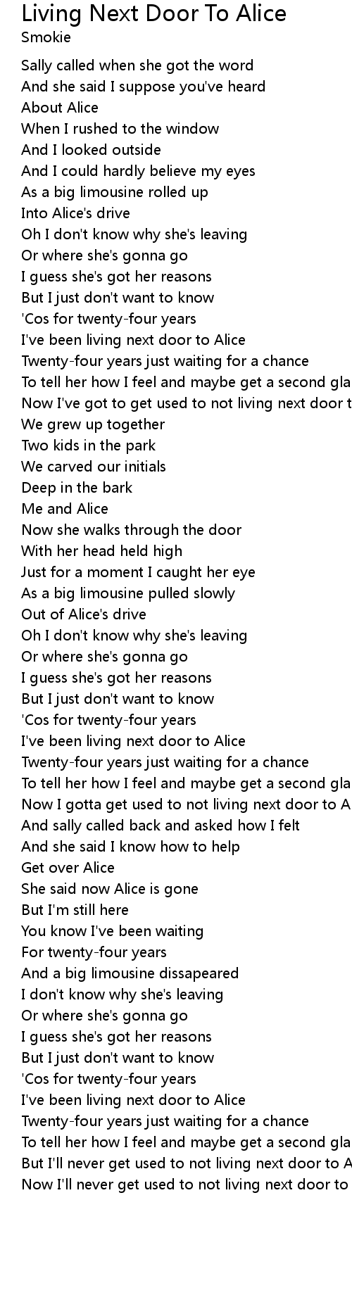 I've been living next door to Alice |
