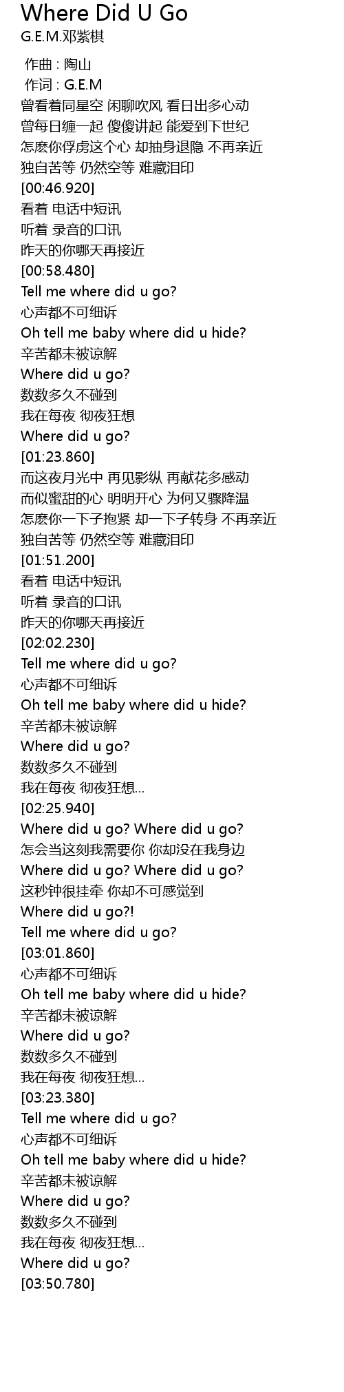 [01:57.850] zuó tiān de nǐ nǎ tiān zài jiē jìn