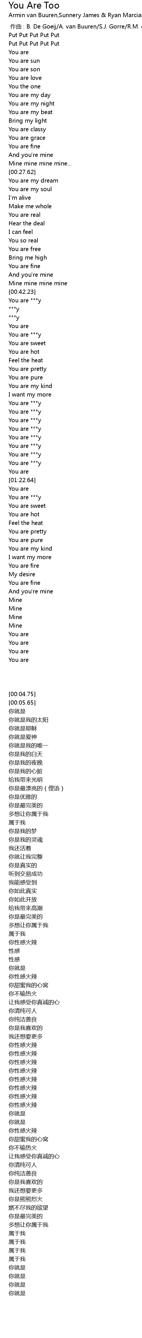 | [01:05.79] | You are ***y |