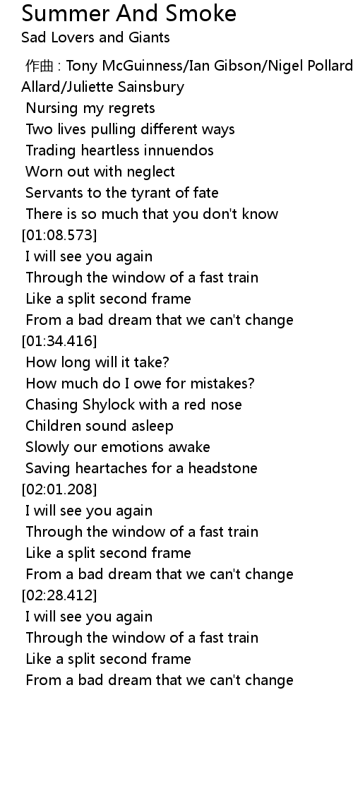 | [00:00.000] | 作曲 : Tony McGuinness/Ian Gibson/Nigel Pollard/Simon Allard/Juliette Sainsbury |