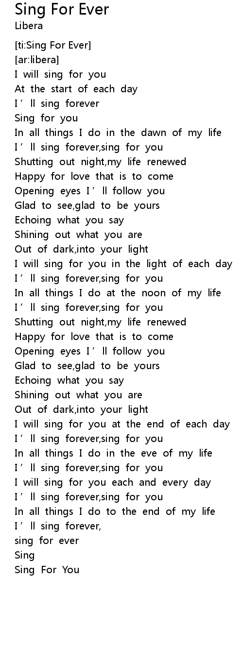 | [00:55.94] | I ' ll sing forever, sing for you |