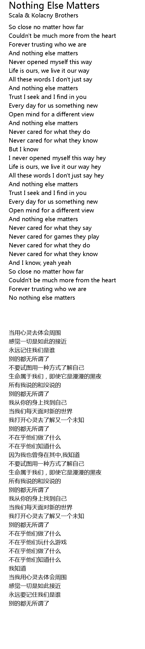 No nothing else matters |