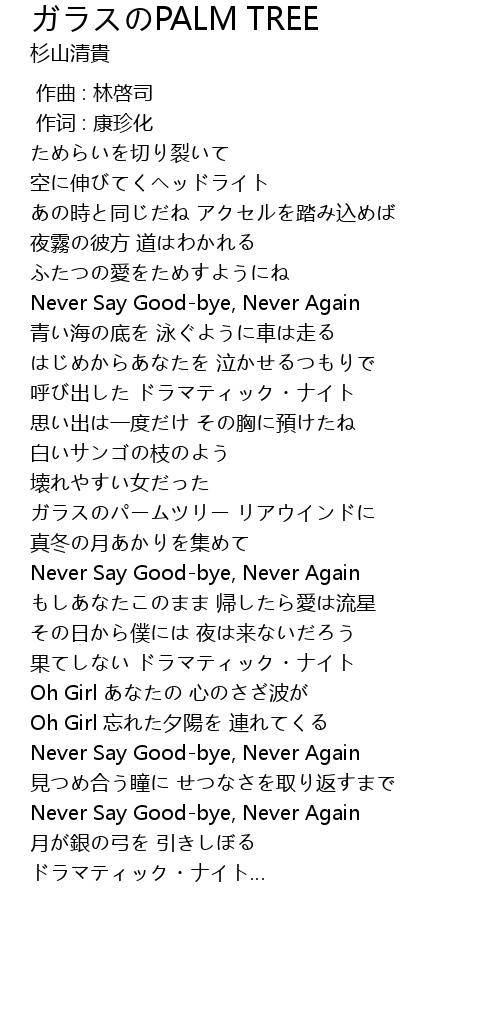 | [03:26.74] | Never Say Good-bye, Never Again |