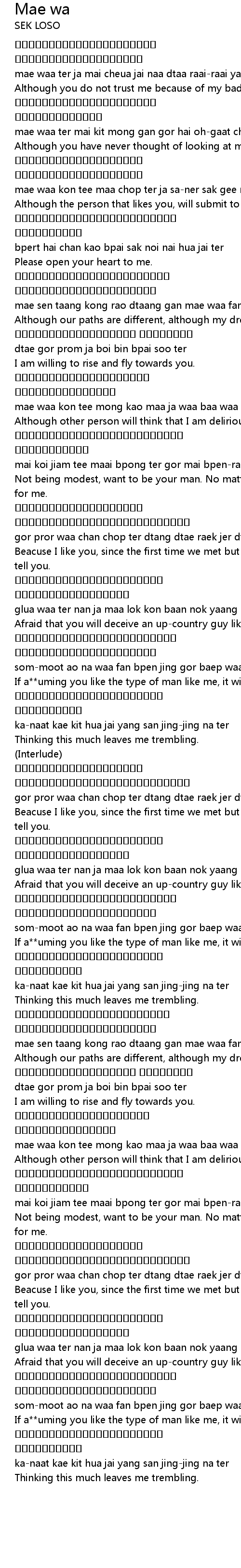 | mae waa ter ja mai cheua jai naa dtaa raairaai yaang chan | |