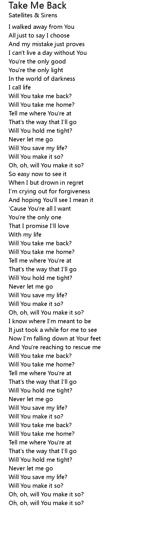 Will You take me back? |